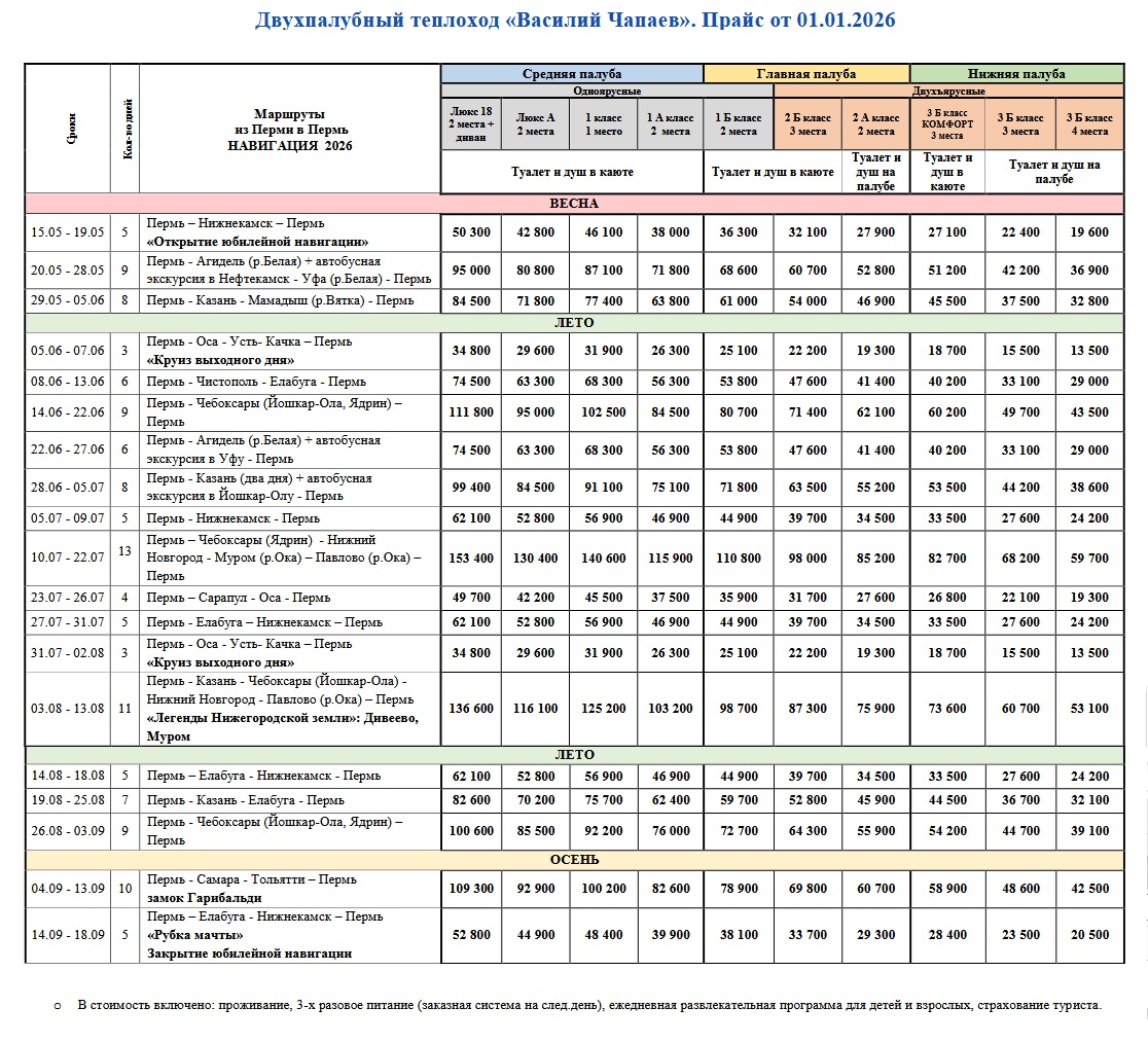 Навигация теплохода «Чапаев» в 2025 году предусматривает следование по реке Кама, Волга, . Выбрав его в качестве средства передвижения, вы сможете посетить Нижний Новгород, Казань, Елабугу, Чебоксары, Чайковский, Усть- Качка, Нижнекамск, Сарапул, Самара, Ульяновск, Березняки и другие города (конкретный перечень зависит от программы). Расписание предусматривает несколько вариантов. Вы можете отправиться в круиз как на 2 дня, так и на 11 дней — подходящий вариант найдет каждый, независимо от количества свободного времени.